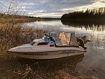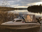 Прозрачные боковины и окно над ветровым стеклом обеспечивают отличный обзор и естественное освещение. Легкий доступ к кормовой части лодки через заднюю откидную дверь. Вентиляционные клапаны и боковые молнии обеспечивают комфорт и удобство. Чехол-банан для надежной защиты и удобного хранения.