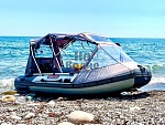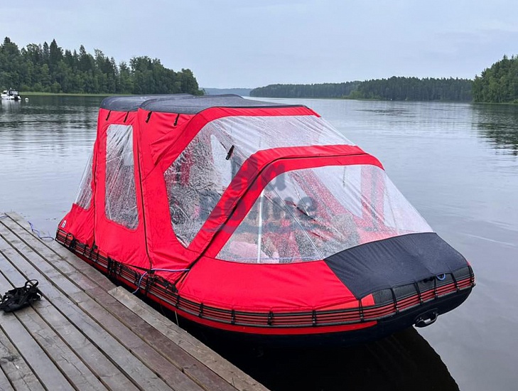 Боковины тента оснащены капитанскими окнами и могут быть полностью подняты, что создает открытое пространство вокруг лодки и обеспечивает легкий доступ к бортовой части. Это особенно удобно при стоянии на причале или для загрузки и разгрузки оборудования.